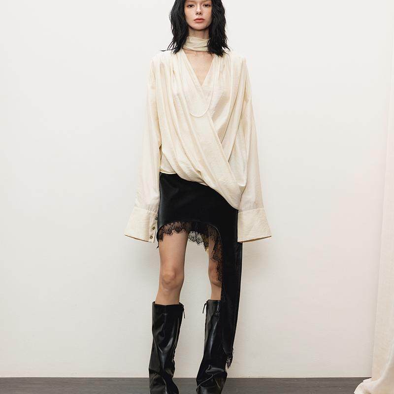 气质内搭女叠穿背心打底百搭 衬衫 法式 V领木耳花边丝滑缎面无袖