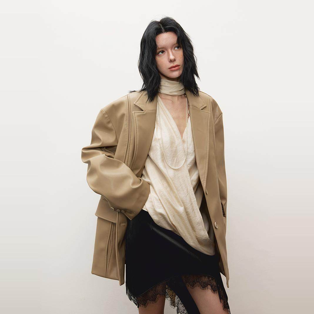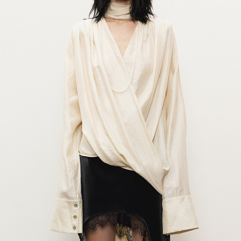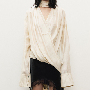 抗皱免烫醋酸衬衣 通勤面试气质上衣新款 高级感红色缎面衬衫 女长袖