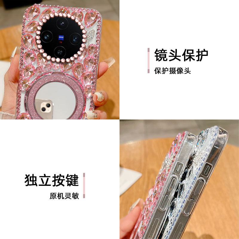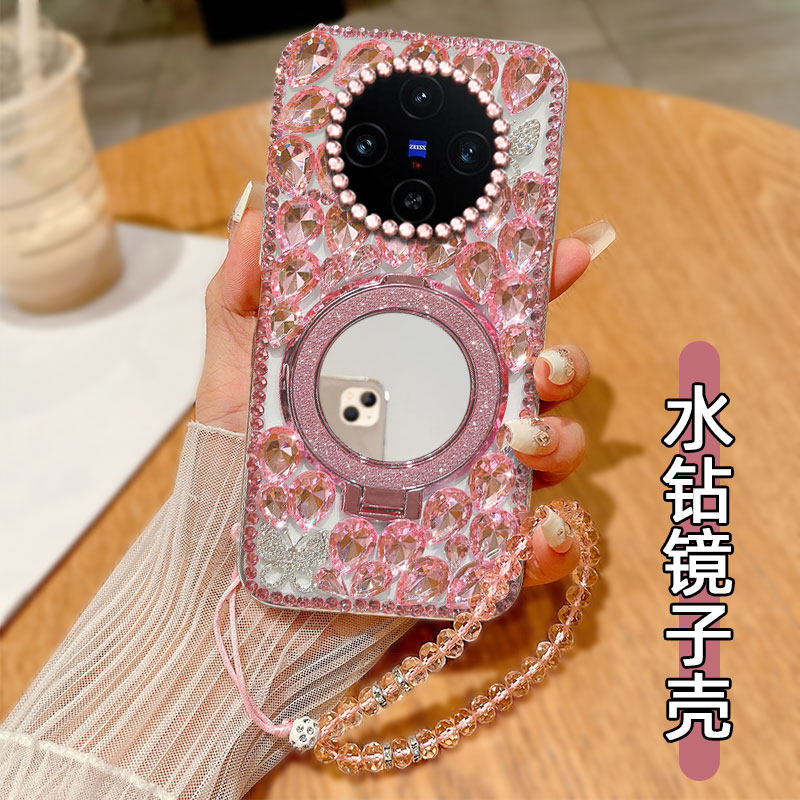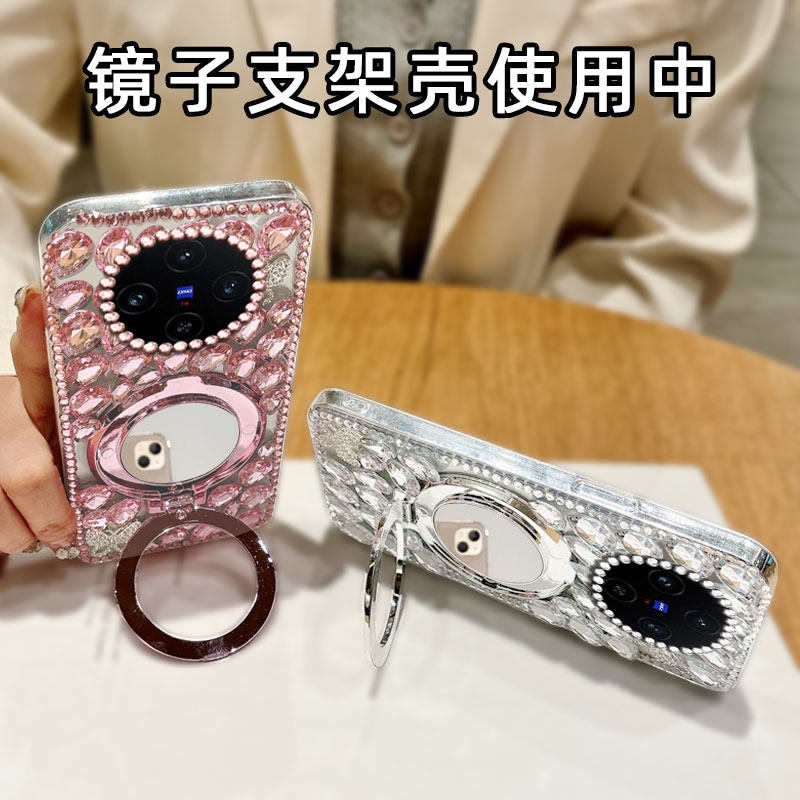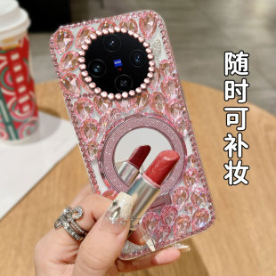 满钻奢华带镜子适用vivoX100手机壳带支架5SE新品 X200全包X21后置指纹网红Y73s x23本命年X100防摔Y3女款