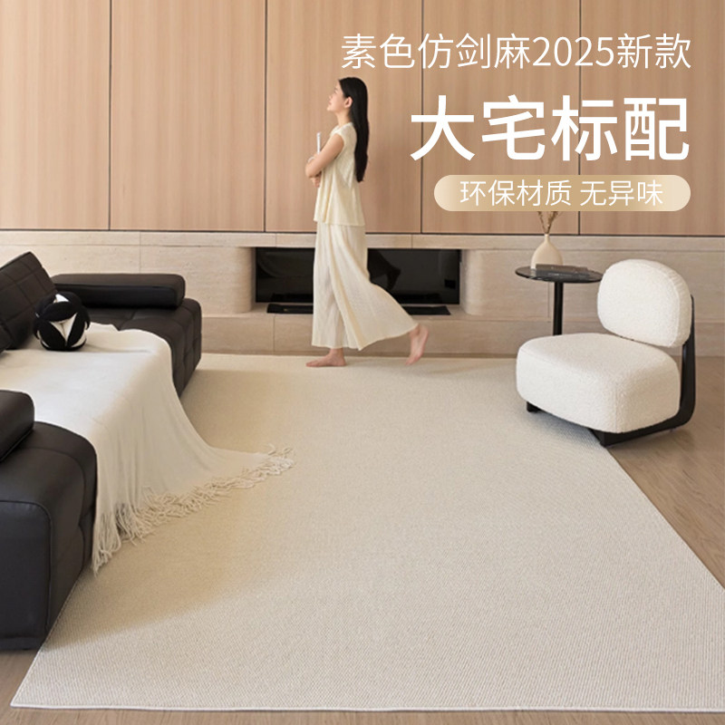 仿剑麻地垫猫爪耐磨防污米色高级感客厅地毯卧室大面积直播背景布