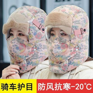 帽子女冬季 加绒加厚防风面罩保暖神器电动车骑行男头套棉帽雷锋帽