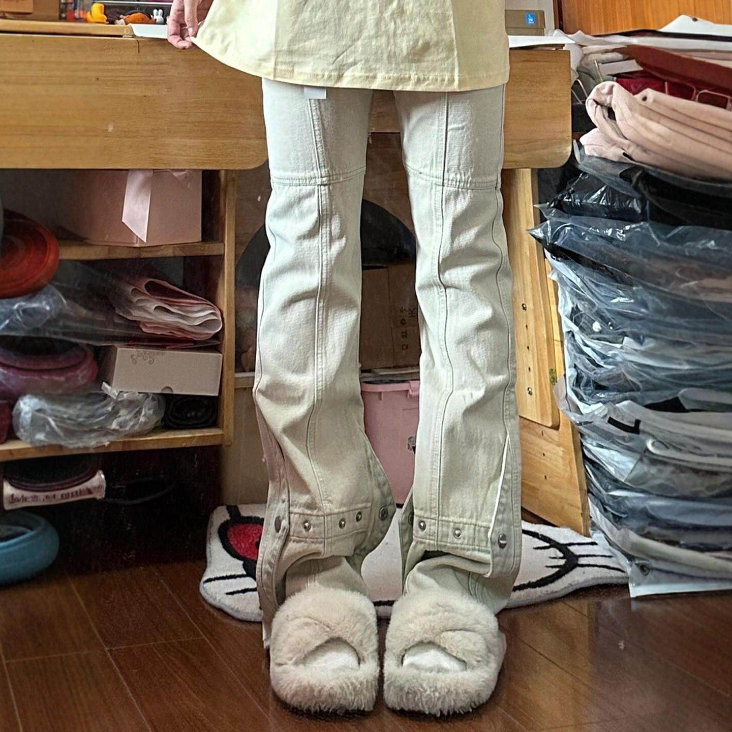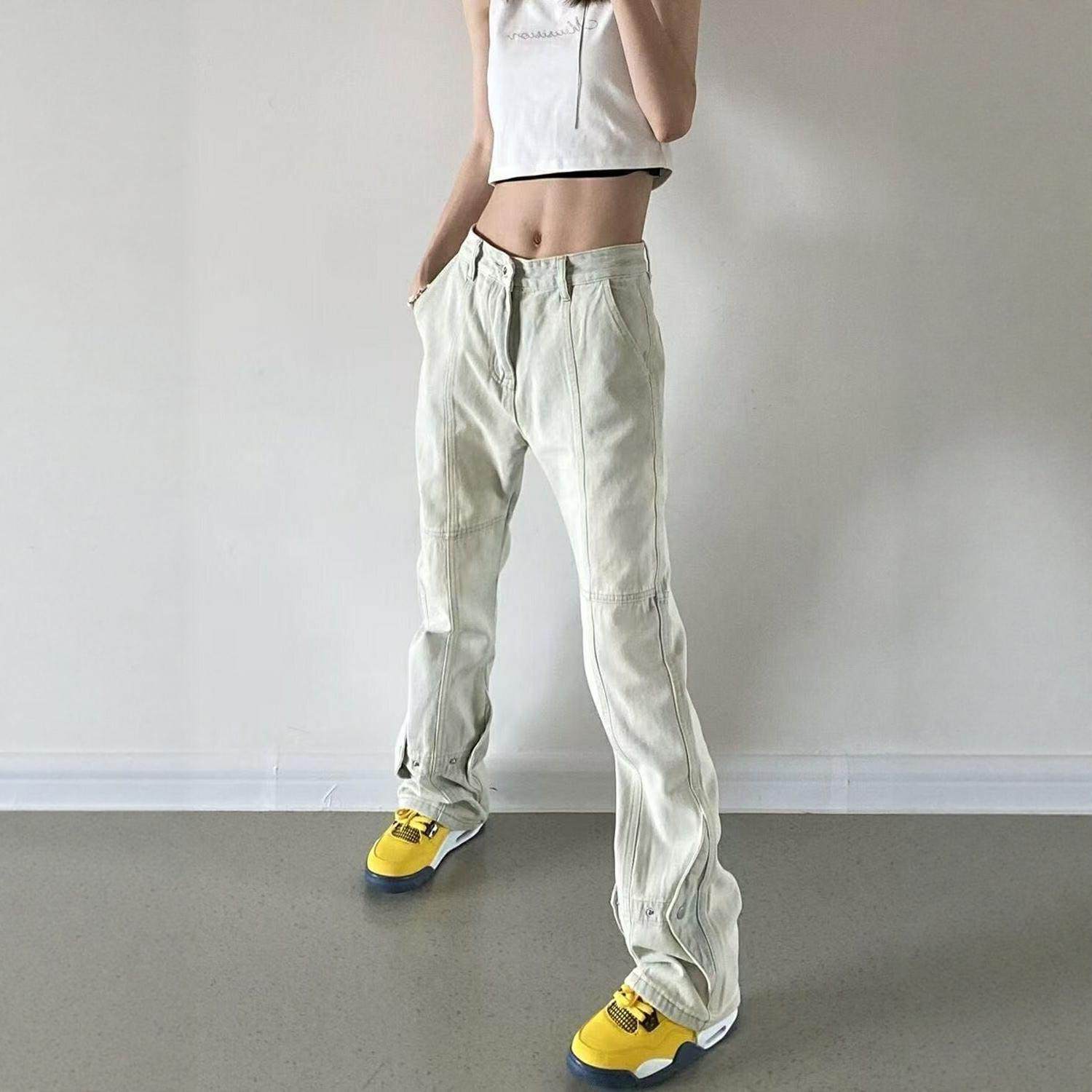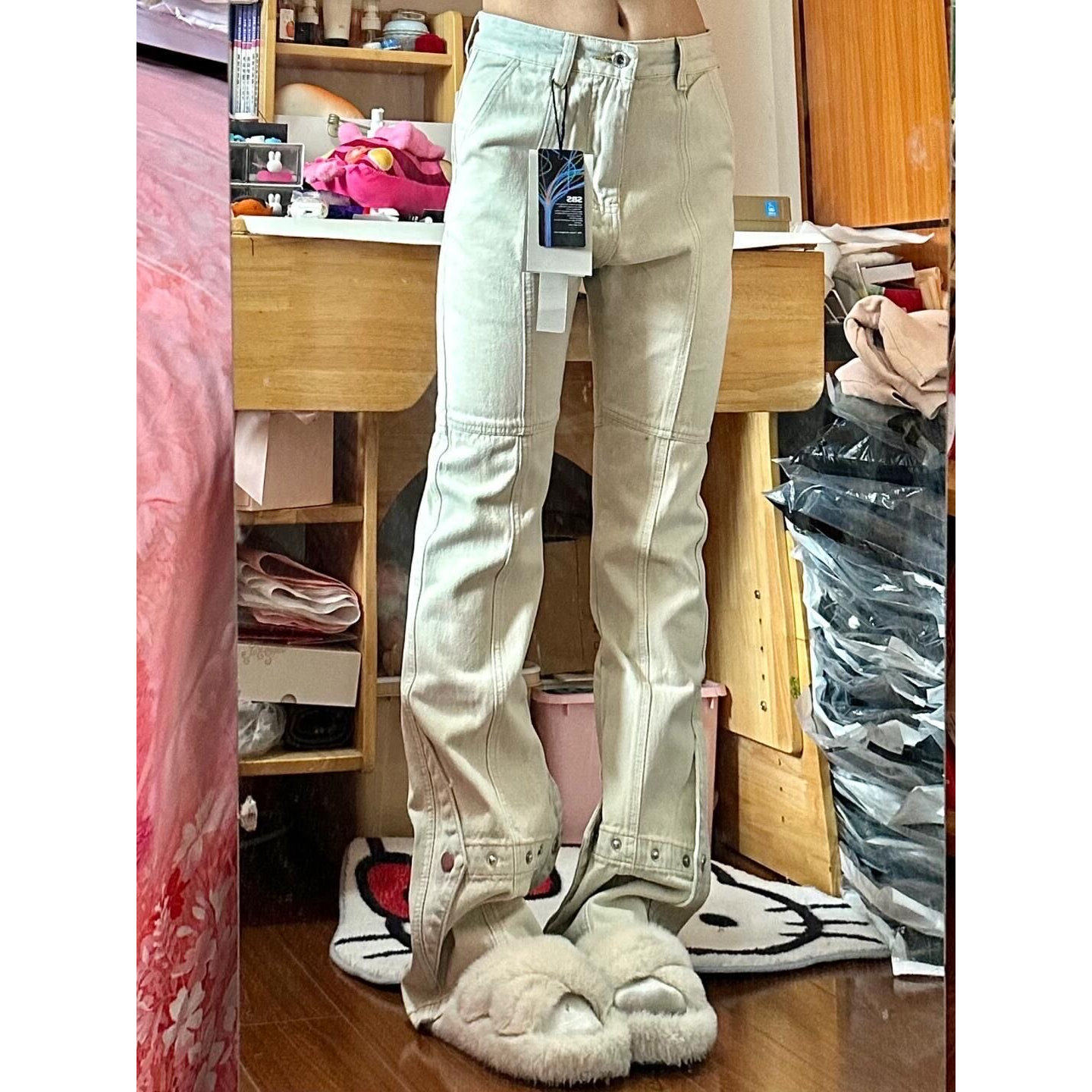 嘻哈垂坠长裤 男女潮牌春夏季 子潮流 高街水洗浅黄泥排扣牛仔裤 美式