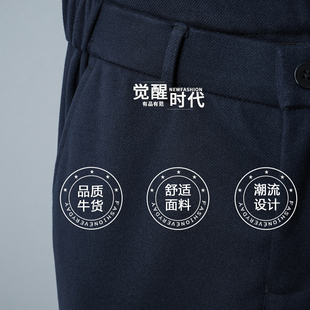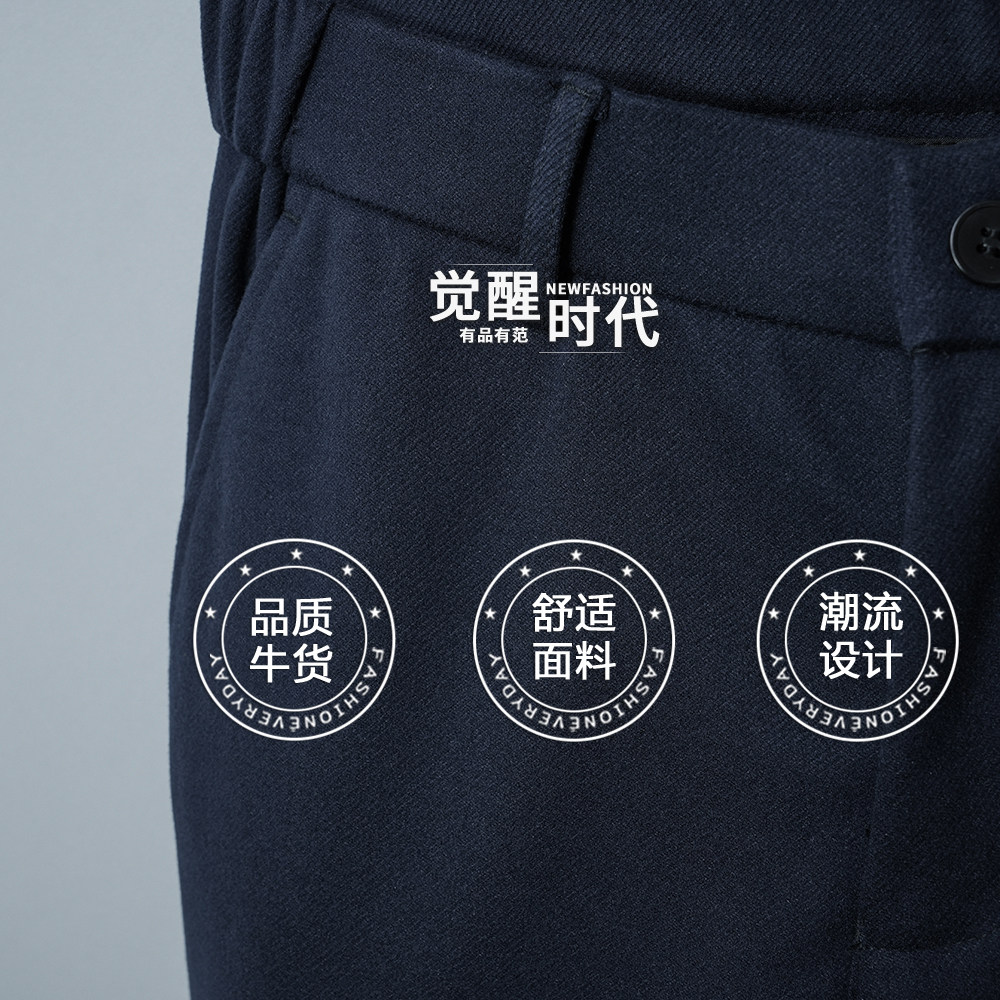 裤 磨毛蓝色2025新款 子男士 宽松直筒宝蓝秋季 九分休闲裤 毛呢秋冬季