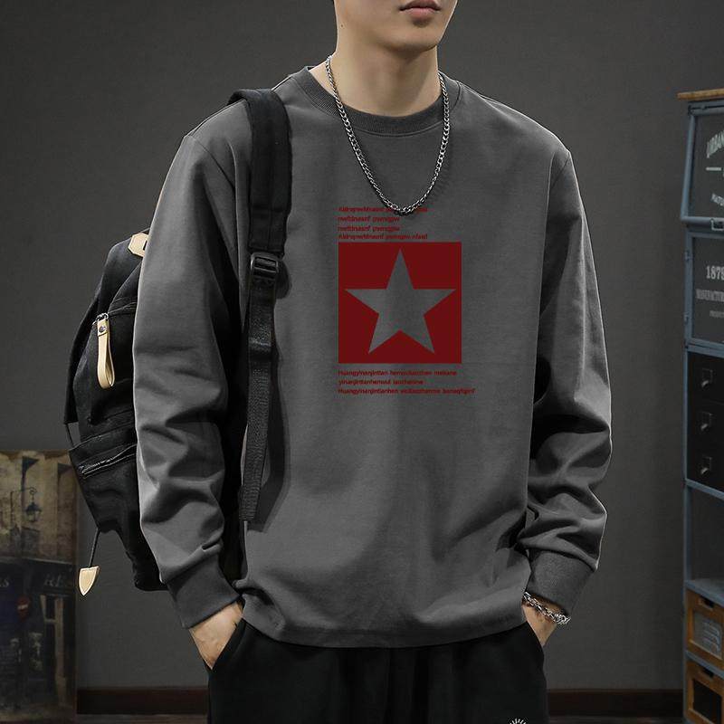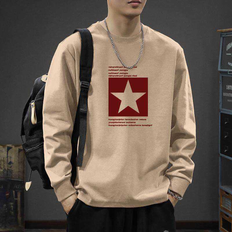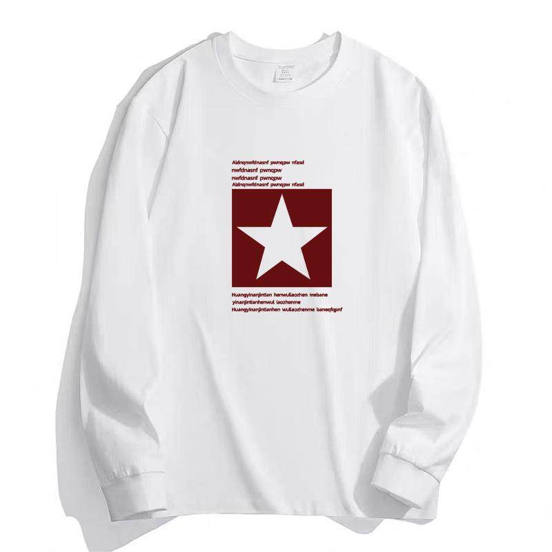 潮牌白色上衣服内搭宽松春秋打底衫 T恤男款 重磅体恤纯棉长袖 美式