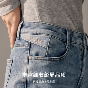 女高腰显瘦宽松加绒气质喇叭裤 复古蓝微喇阔腿牛仔裤 新款 乔栈秋季