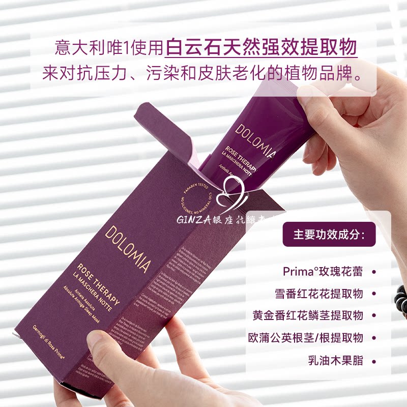 意大利Dolomia玫瑰抗衰睡眠面膜水润保湿 75ml 紧致嫩肤提亮涂抹式