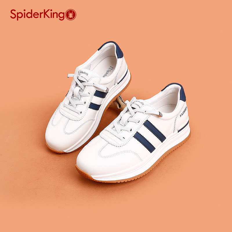 松紧带一脚蹬运动休闲德迅鞋 平底板鞋 2025春季 蜘蛛王女真皮小白鞋