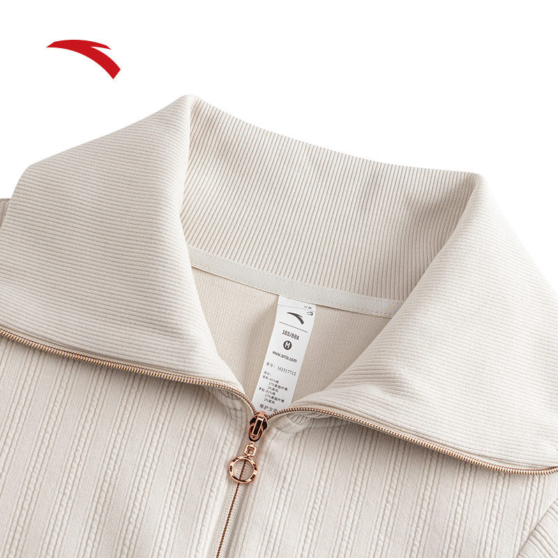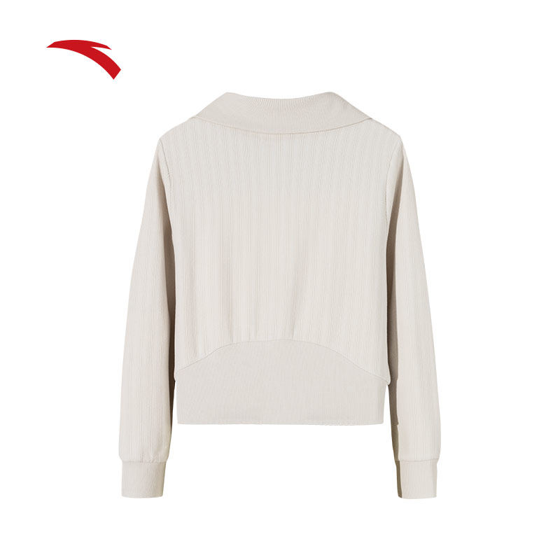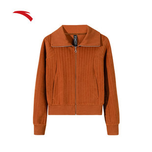 休闲宽松运动上衣162517712 翻领针织开衫 安踏运动咖外套女款 秋季