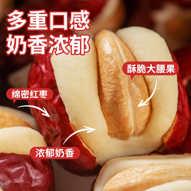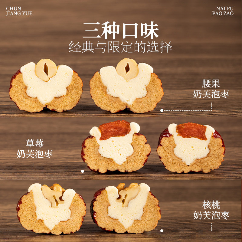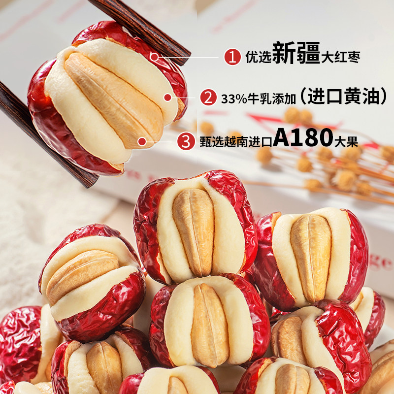 春江月腰果泡芙枣奶枣红枣夹核桃心坚果抱富奶芙喜糖批发结婚专用