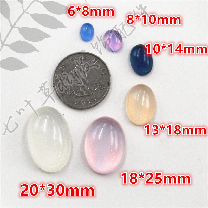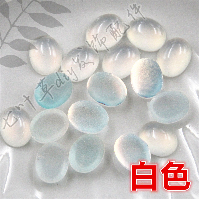 14mm椭圆形树脂仿玉石戒面平底钻服饰仿猫眼半面钻
