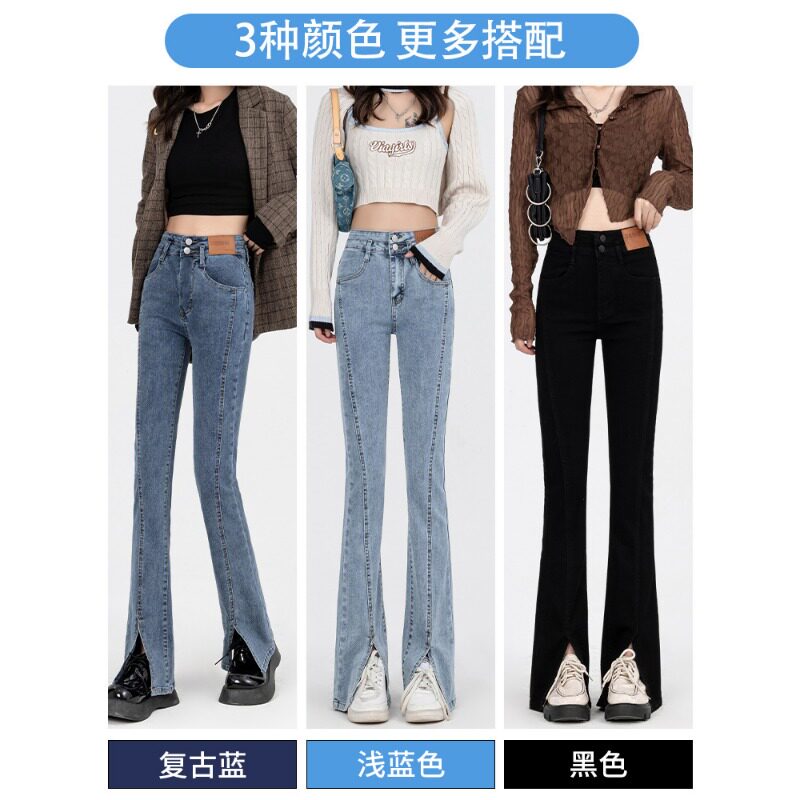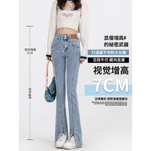 小个子高腰显瘦弹力喇叭裤 新款 子 女2023年春季 复古开叉微喇牛仔裤
