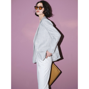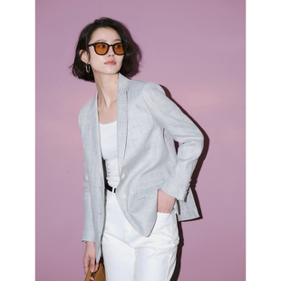 芝美日禾 职业休闲通勤雅灰小个子外套女 意大利产亚麻春夏西装
