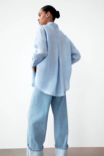 春装 口袋饰亚麻衬衫 新款 百搭宽松长袖 8372034 防晒白色衬衣时尚