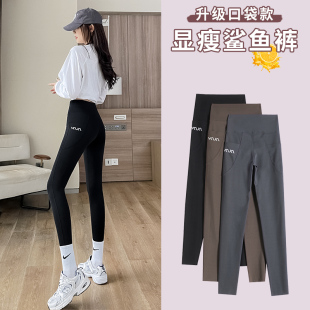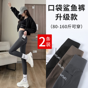 健身瑜伽裤 收腹高腰紧身显瘦大码 女春秋外穿薄款 口袋鲨鱼皮打底裤