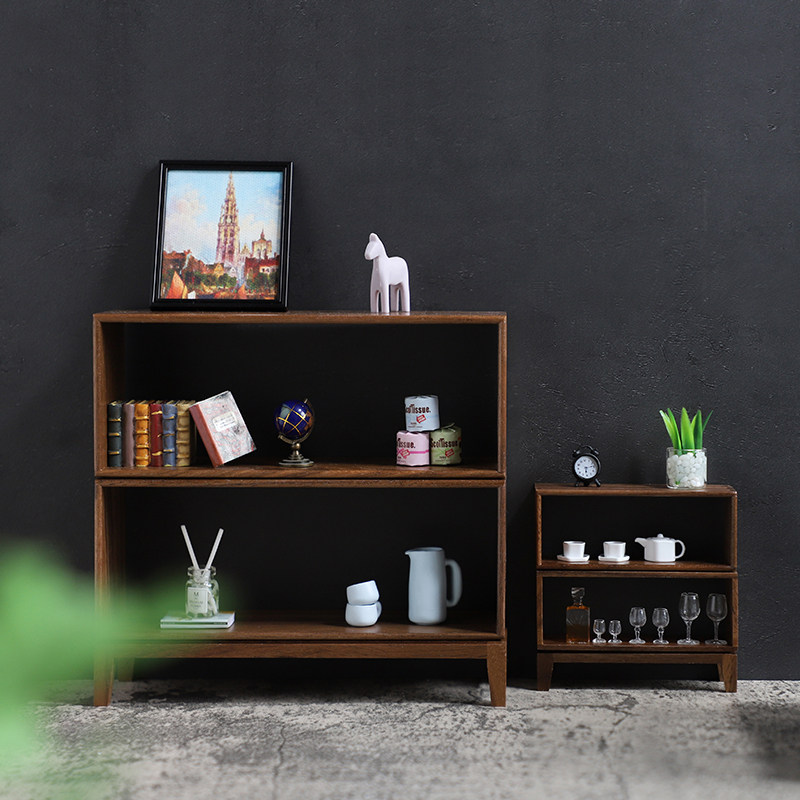 12娃娃屋配件微缩模型家具木简约框架结构双层柜电视柜M162