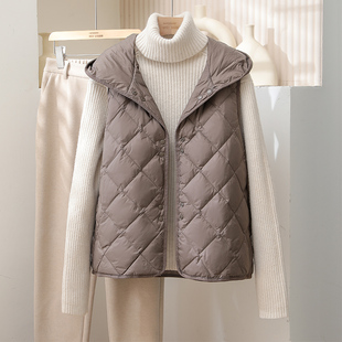 新款 连帽宽松内胆内搭外套 羽绒马甲女背心菱形格小香风短款
