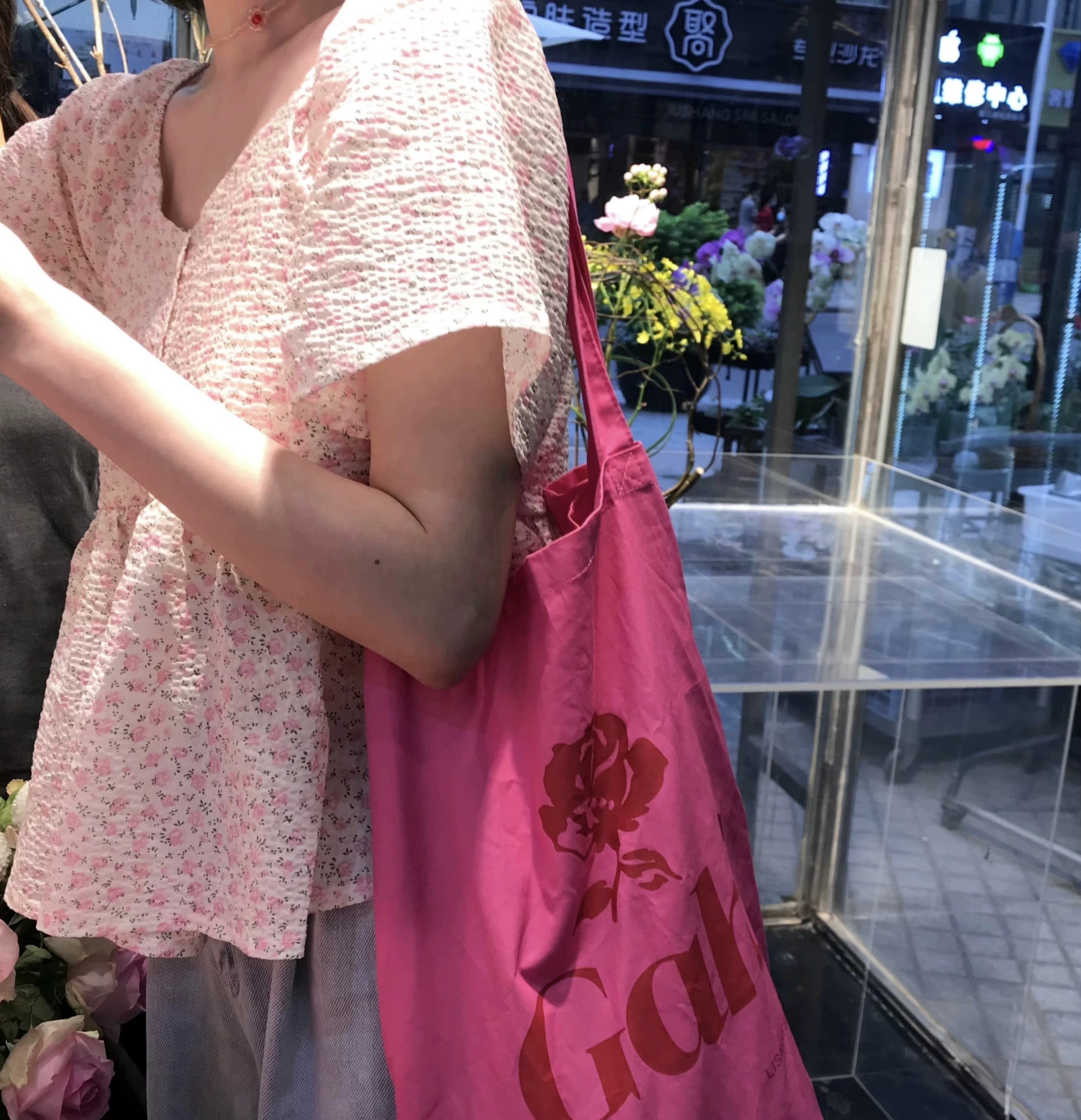 Youngforever韩国碎花Gah粉色枚红色玫瑰ins薄款 帆布包布袋购物袋