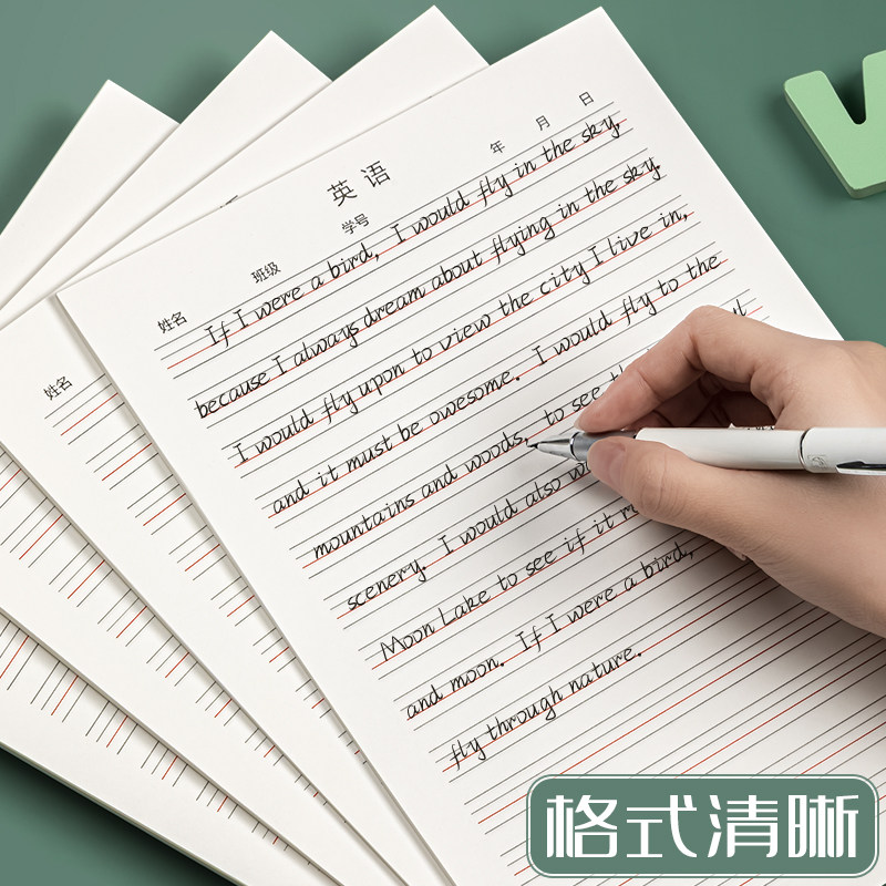 加厚英语作业纸初高中生专用16k英语本大学生加厚四线三格作业本可撕英语听写练习本英文簿练字抄写信纸草稿
