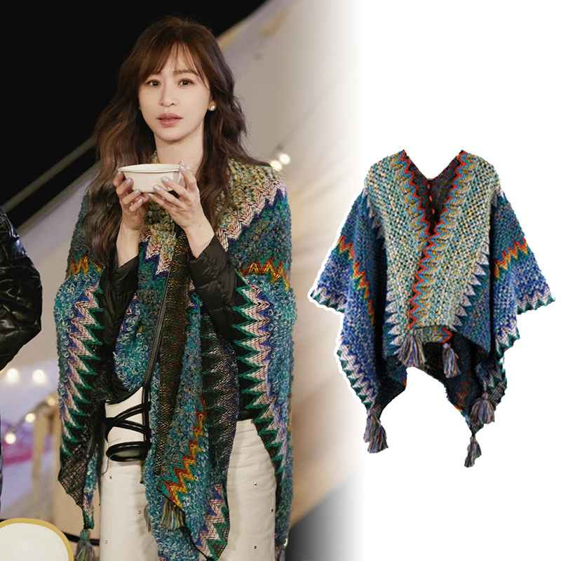 云南特色披肩女民族风丽江大理旅游拍照斗篷披风外搭时尚 洋气围巾