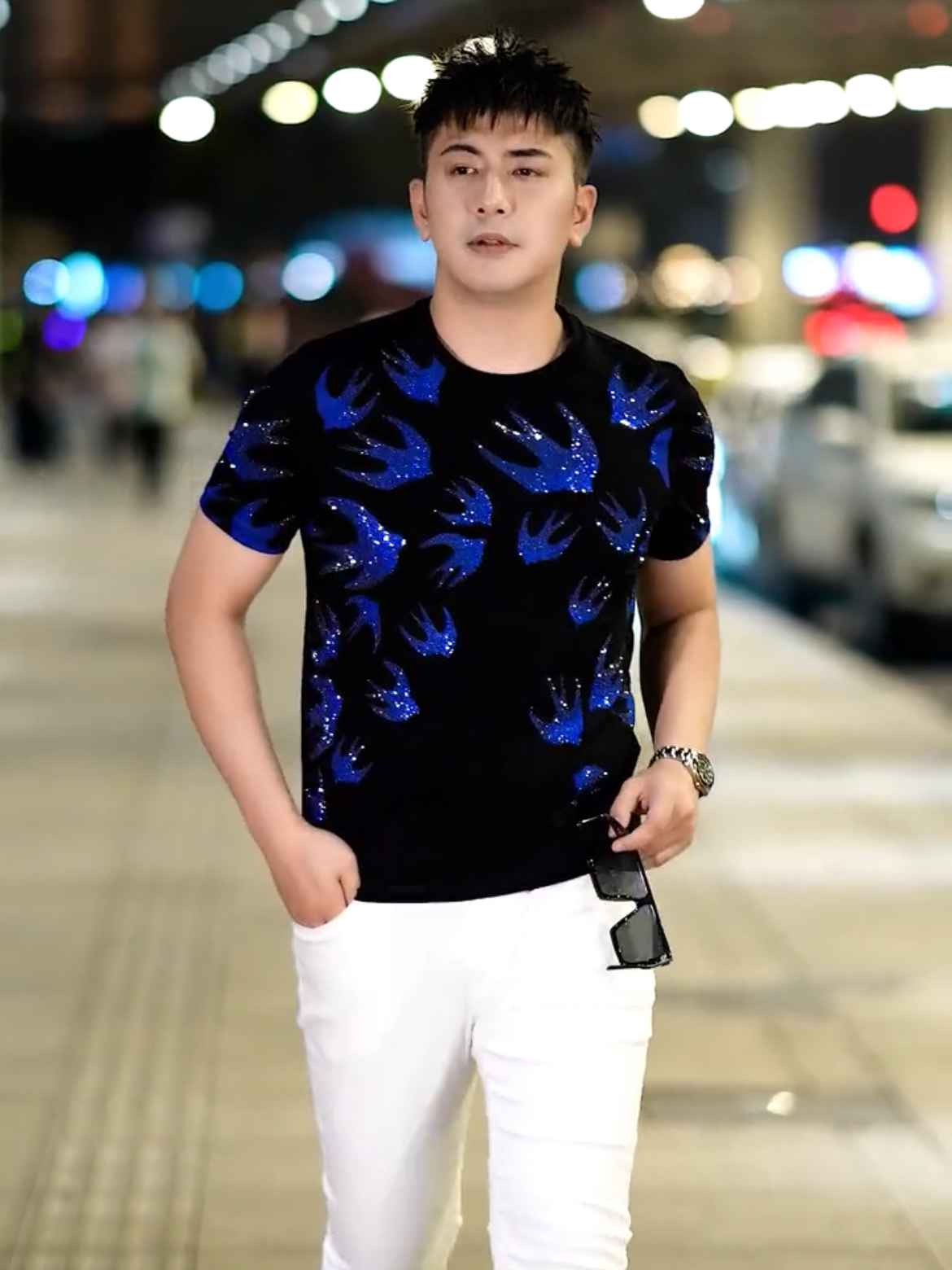 秋冬烫钻时尚 23063男士 短袖 薄款 欧货潮男帅气圆领男 T恤衫 现货