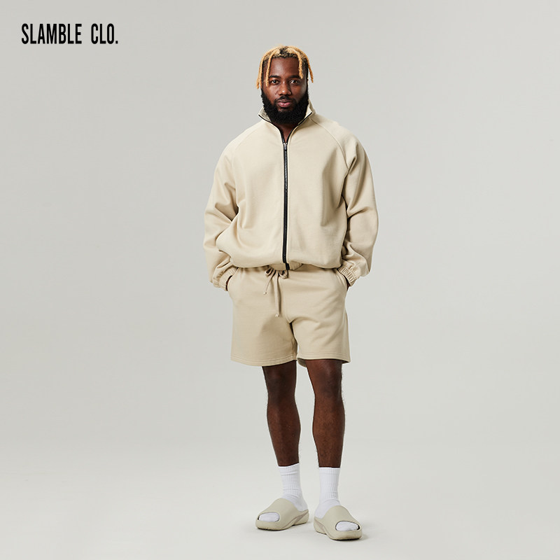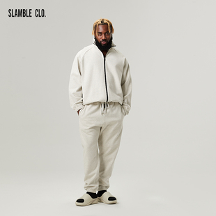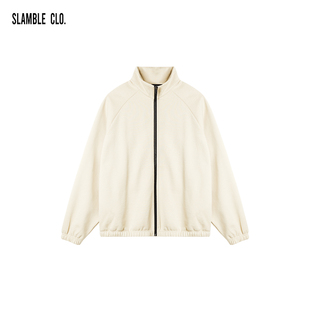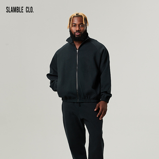 夹克立领外套男休闲运动潮 纯色拉链教练针织美式 SLAMBLE CLO.新款