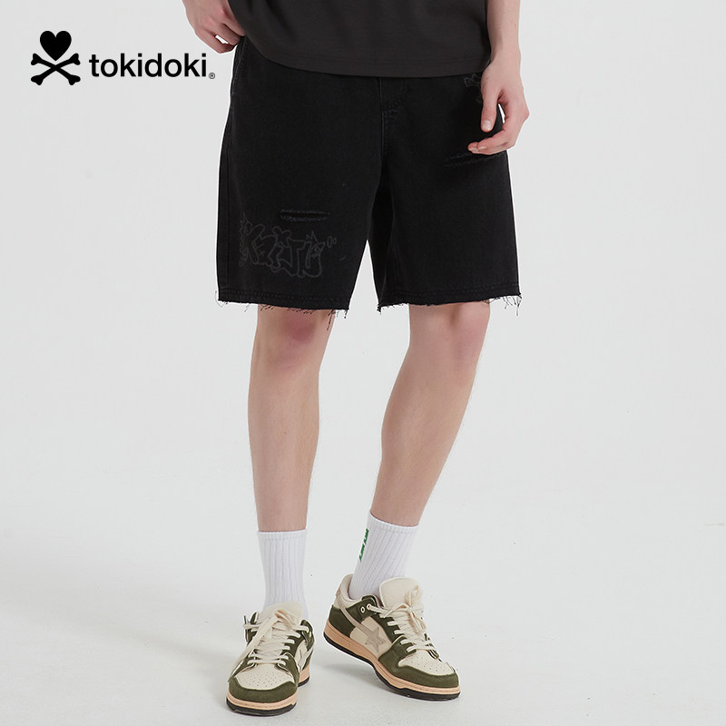 高街情侣裤 tokidoki潮牌卡通趣味涂鸦牛仔短裤 时尚 新款 男女夏季