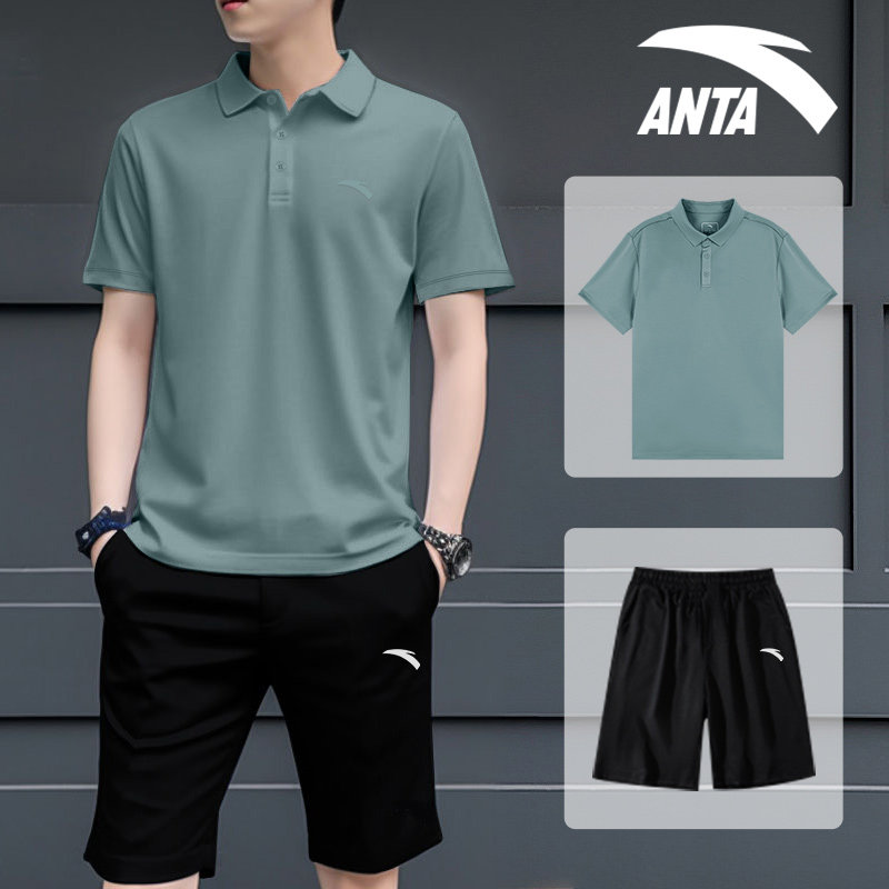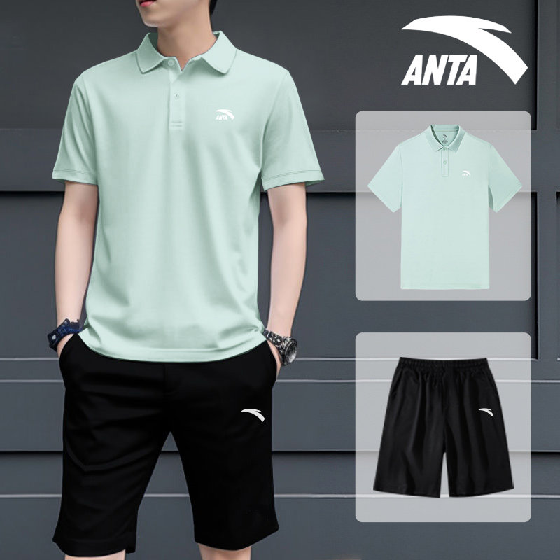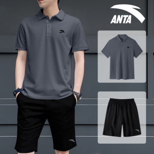 T恤上衣短裤 安踏运动套装 速干polo短袖 夏季 透气两件套 男2026新款