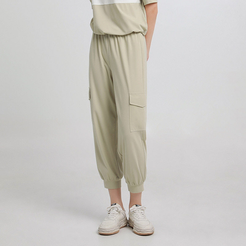 专柜同款 新款 Yifini 女夏季 八分慢跑裤 易菲松紧要宽松束脚裤