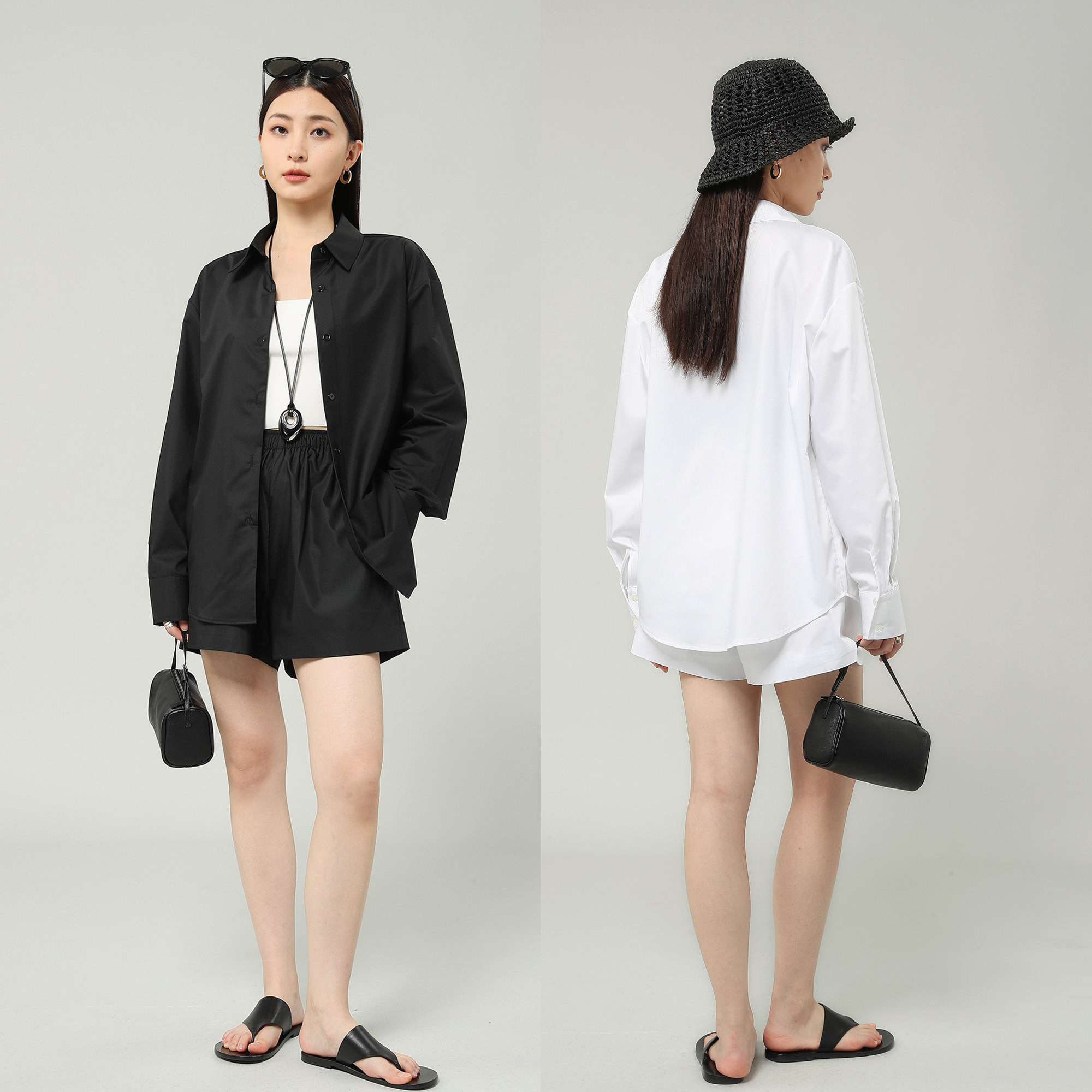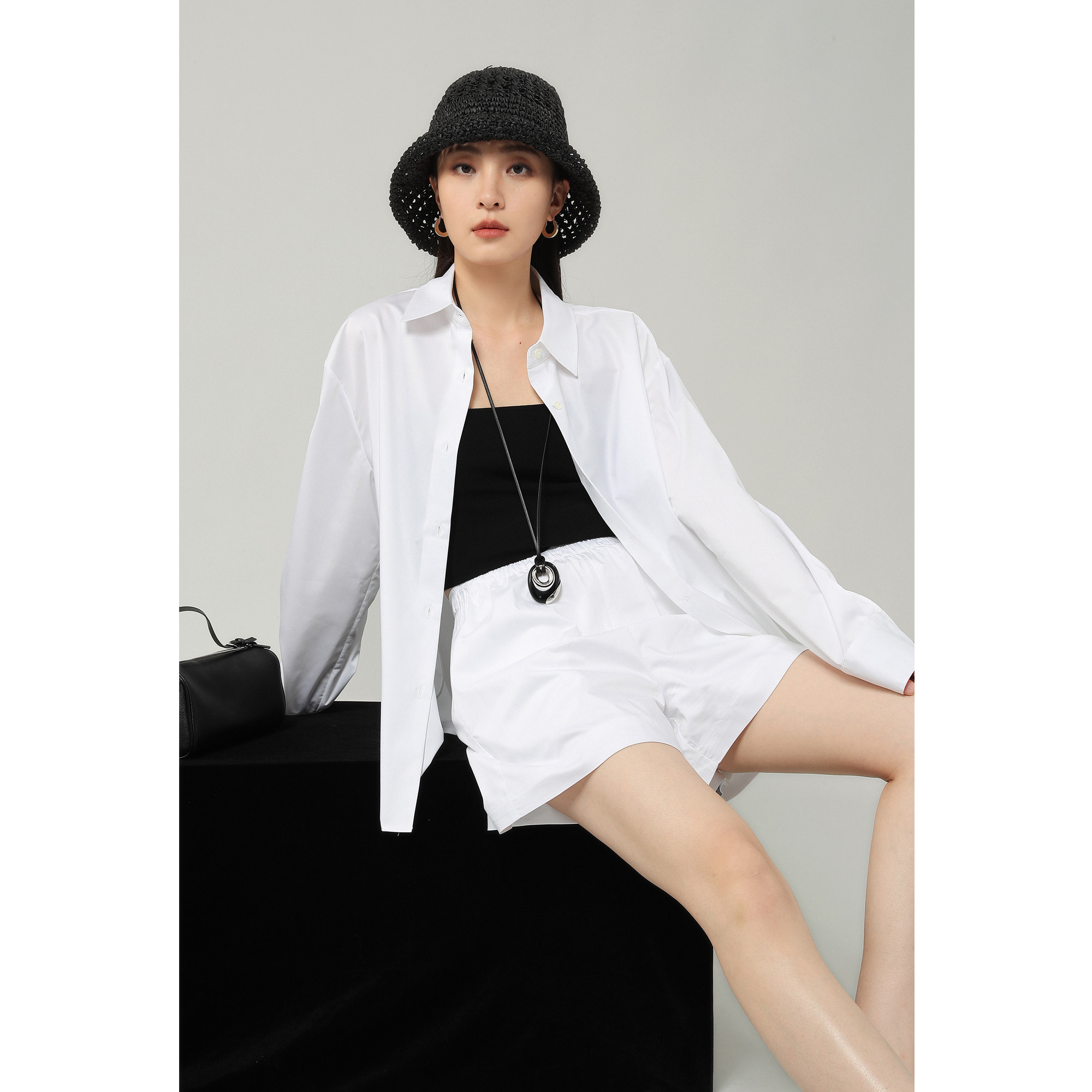 STUDIOS夏季 套装 薄款 短裤 匹马棉及简气质宽松抗皱休闲衬衫 FANLE