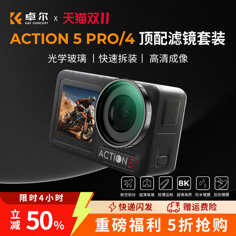 卓尔适用大疆action5pro滤镜uv镜CPL偏振镜运动相机action4 二合一可调星光减光镜 3黑柔nd滤镜ND8