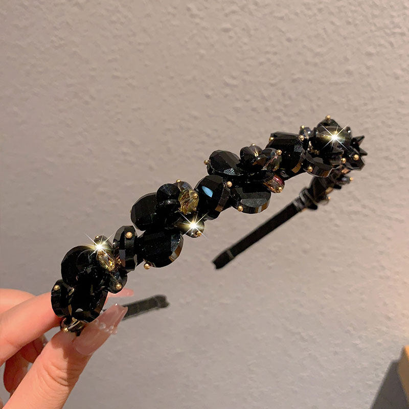 2024新款 头箍宴会超仙发饰头饰 镶钻发箍暗黑色系黑色水晶轻奢时尚