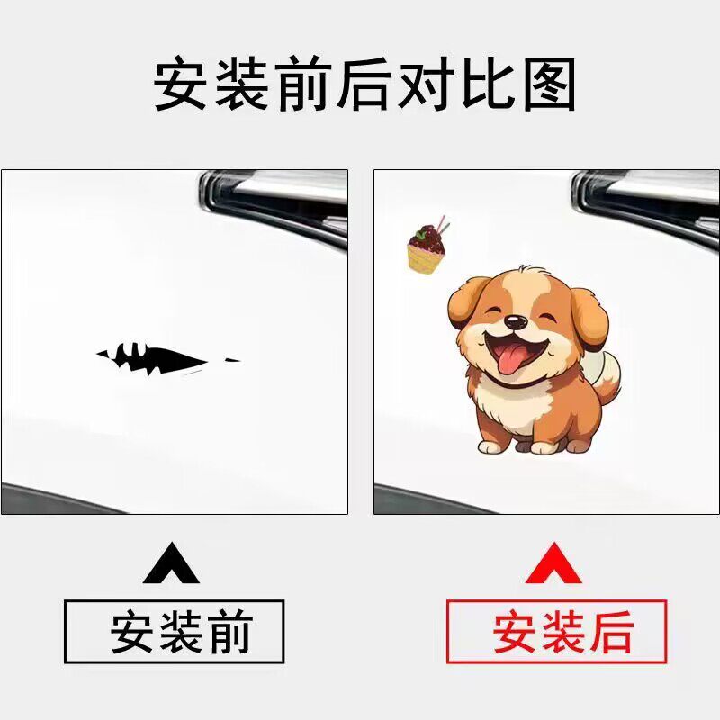 卡通可爱甜点狗狗汽车贴纸保险杠遮盖划痕电动车装 饰划痕遮挡贴画