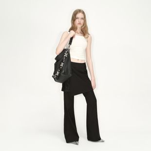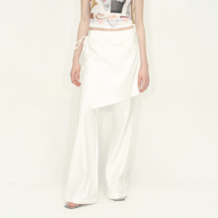 女秋设计感休闲喇叭裤 裙裤 子 蕾丝拼接假两件白色西装 出逃赤岗西