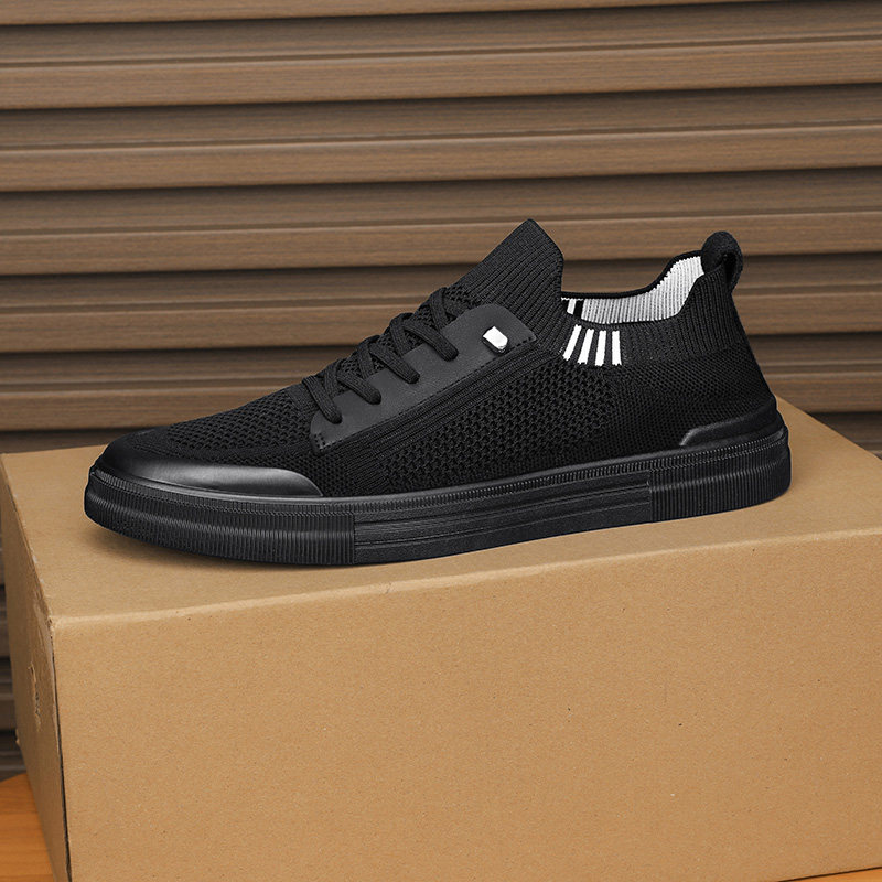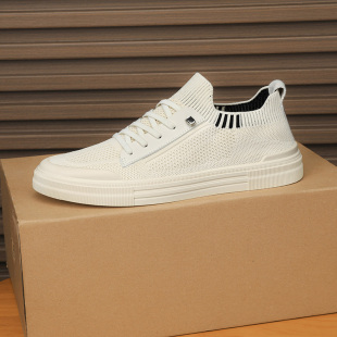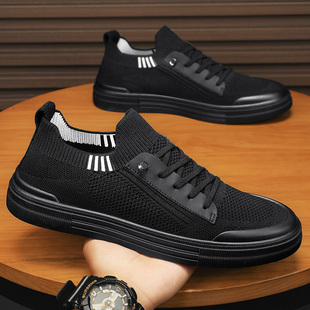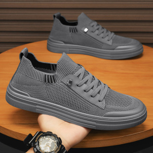 休闲运动轻便软底防滑针织网鞋 透气百搭飞织平板鞋 春季 一脚蹬男鞋