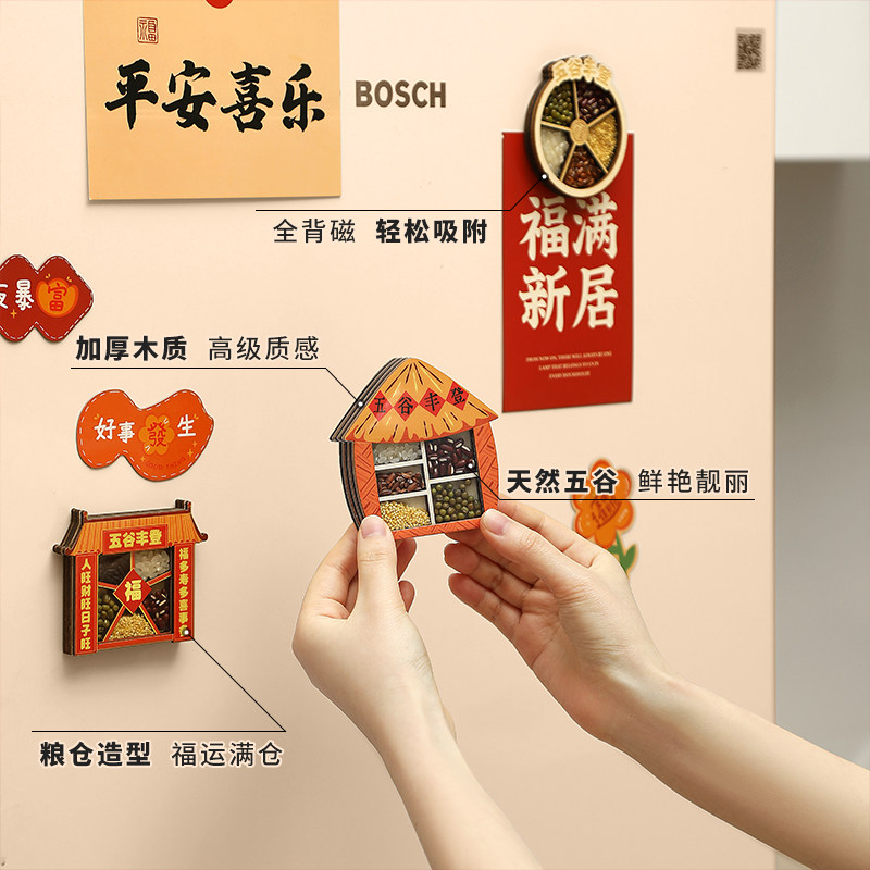 五谷丰登冰箱贴磁吸贴文创乔迁之喜装 创意高级感亚克力 饰新居个性