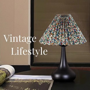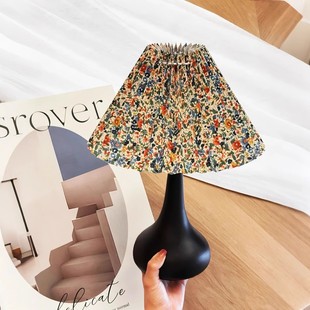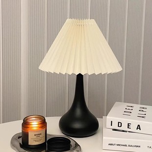 台灯卧室百褶复古实木书房起夜夜灯温馨浪漫桌面装 饰氛围感床头灯