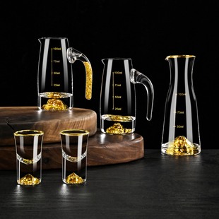 金山白酒杯分酒器套装 家用高档轻奢金箔一口杯小号子弹杯烈酒杯子