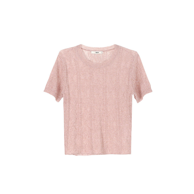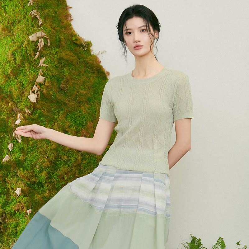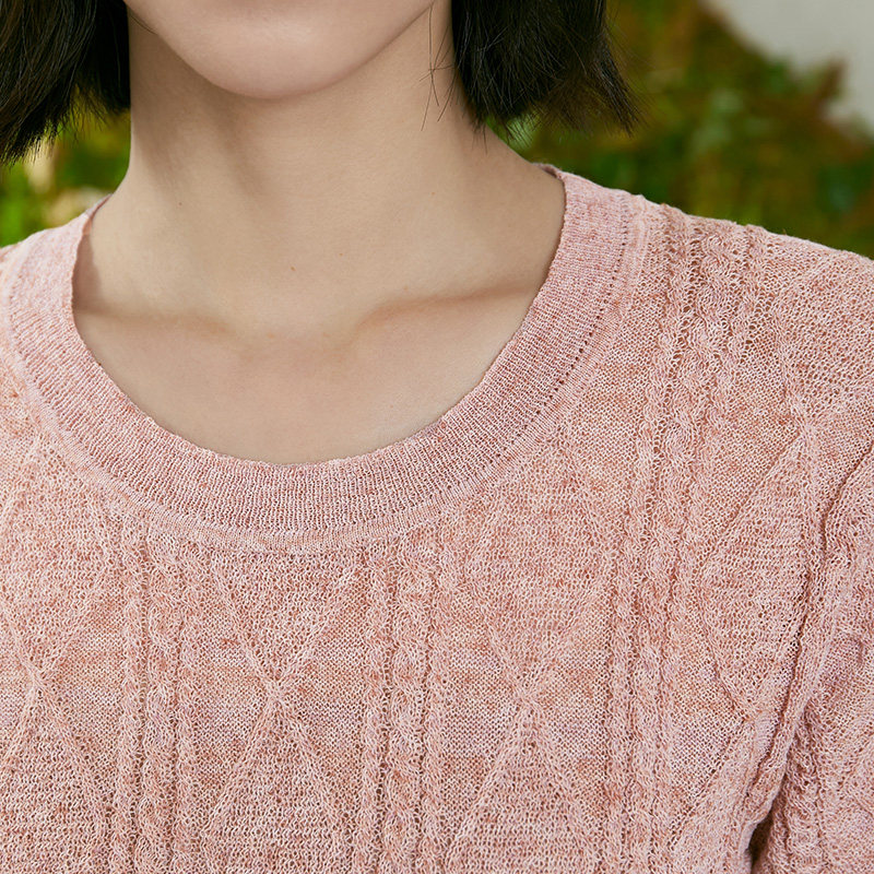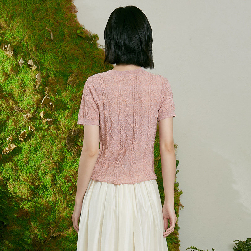 复古绞花百搭慵懒 T恤女2026年夏新款 TALASA商场同款 亚麻针织短袖