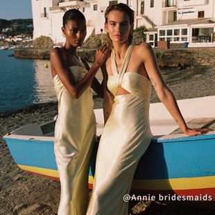 淡黄色缎面长裙姐妹团平时可穿 高级感夏季 法式 伴娘服礼服2025新款