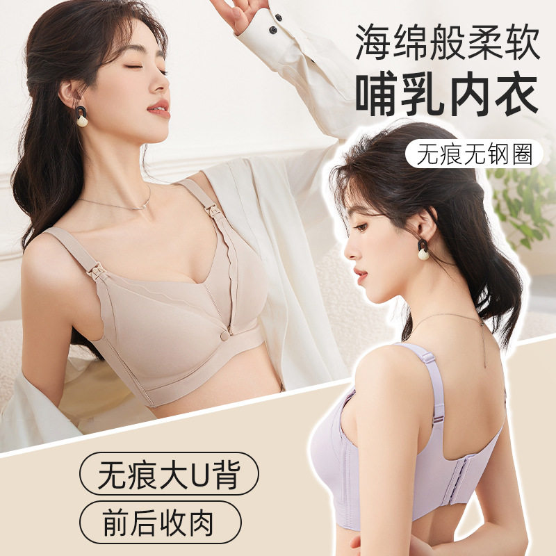 可优比孕期哺乳内衣产后喂奶专用文胸无痕舒适防下垂大码 抗菌胸罩