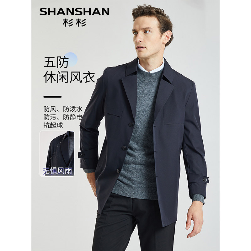 商务男士 中长款 SHANSHAN杉杉风衣卡其色春季 防风外套 抗皱免烫