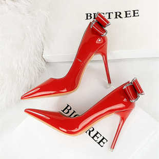 尖头气质玛丽珍鞋 山茶花一字扣粗跟单鞋 骄屿复古浅口高跟鞋 真皮