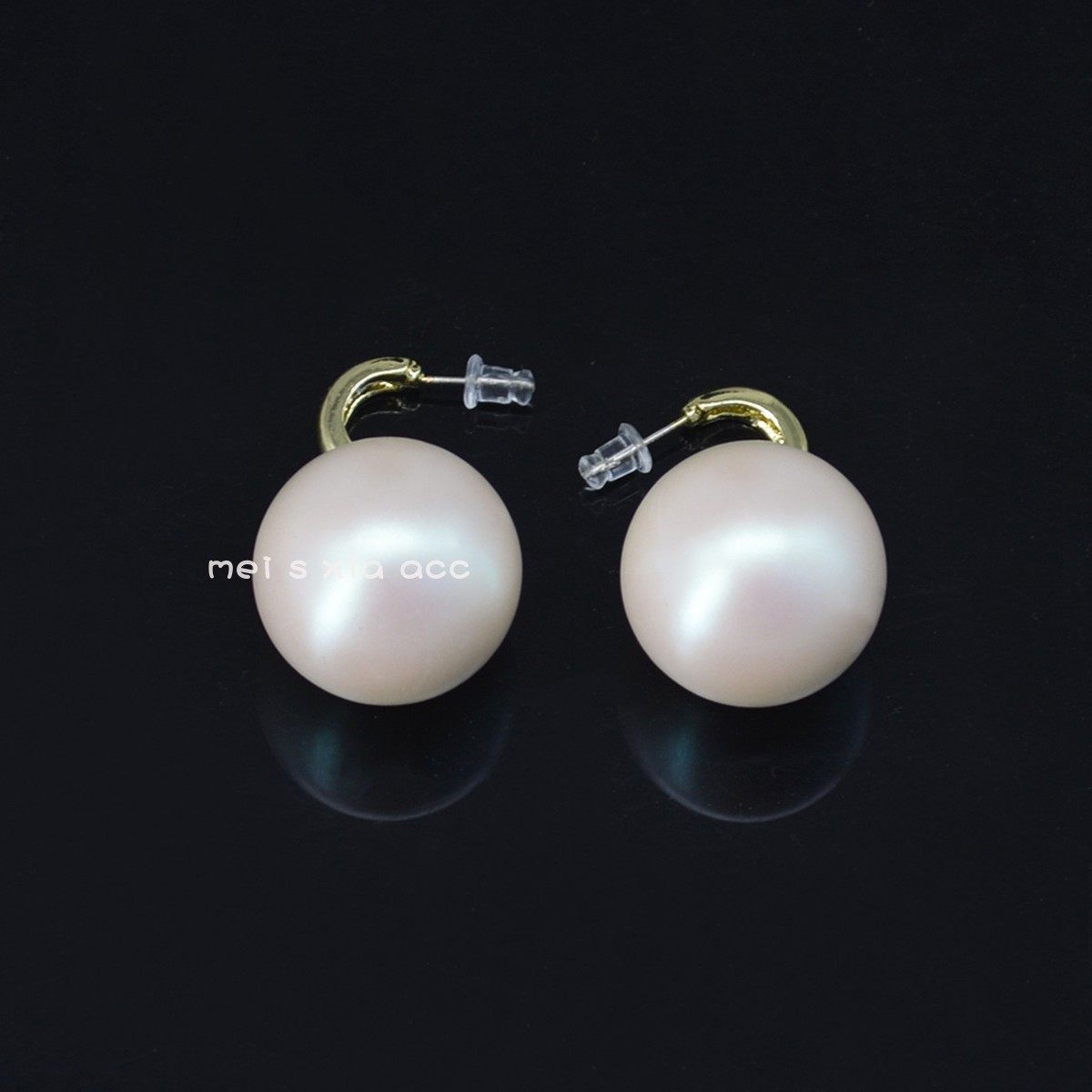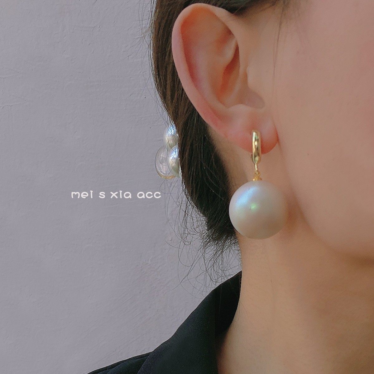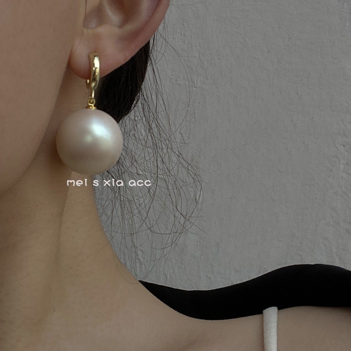 999纯银耳钉女施家珍珠馒头珠耳环扁圆高级气质法式 复古轻奢耳饰