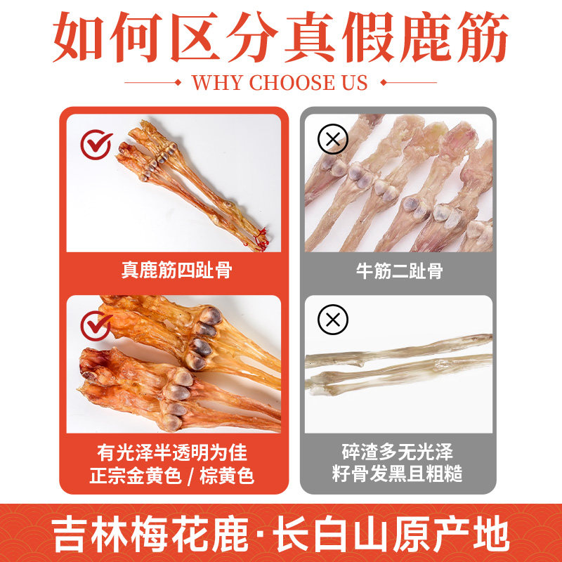 梅花鹿筋干货净筋鹿乡吉林鹿蹄籽骨4块壮骨泡酒煲汤 明星推荐
