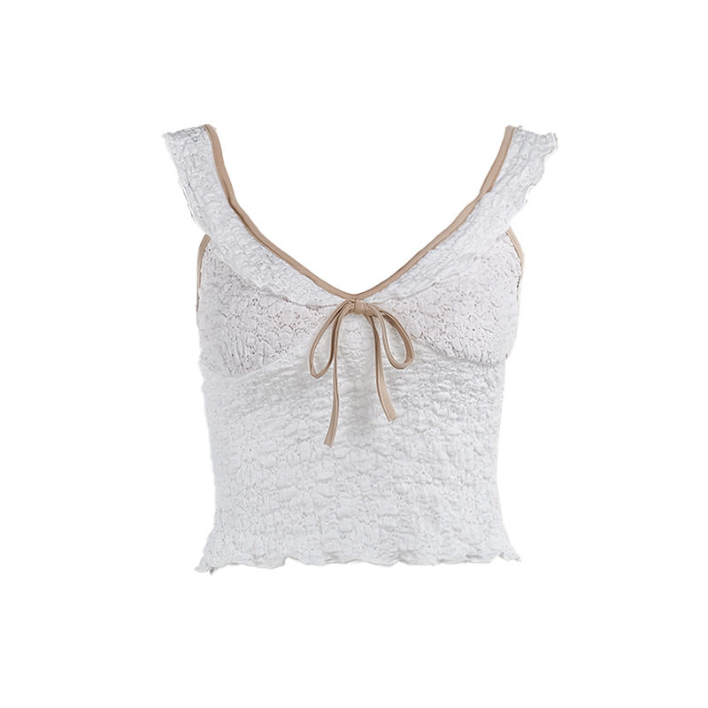 top edges with color 休闲蕾丝背心撞色边上衣 contrasting Tank