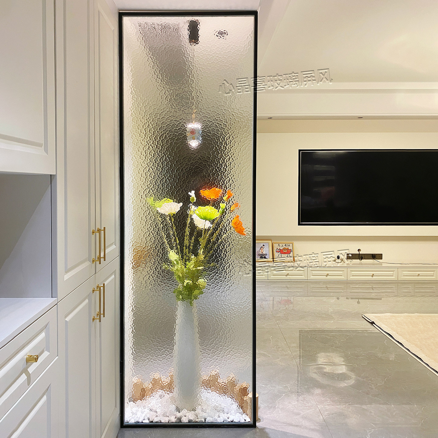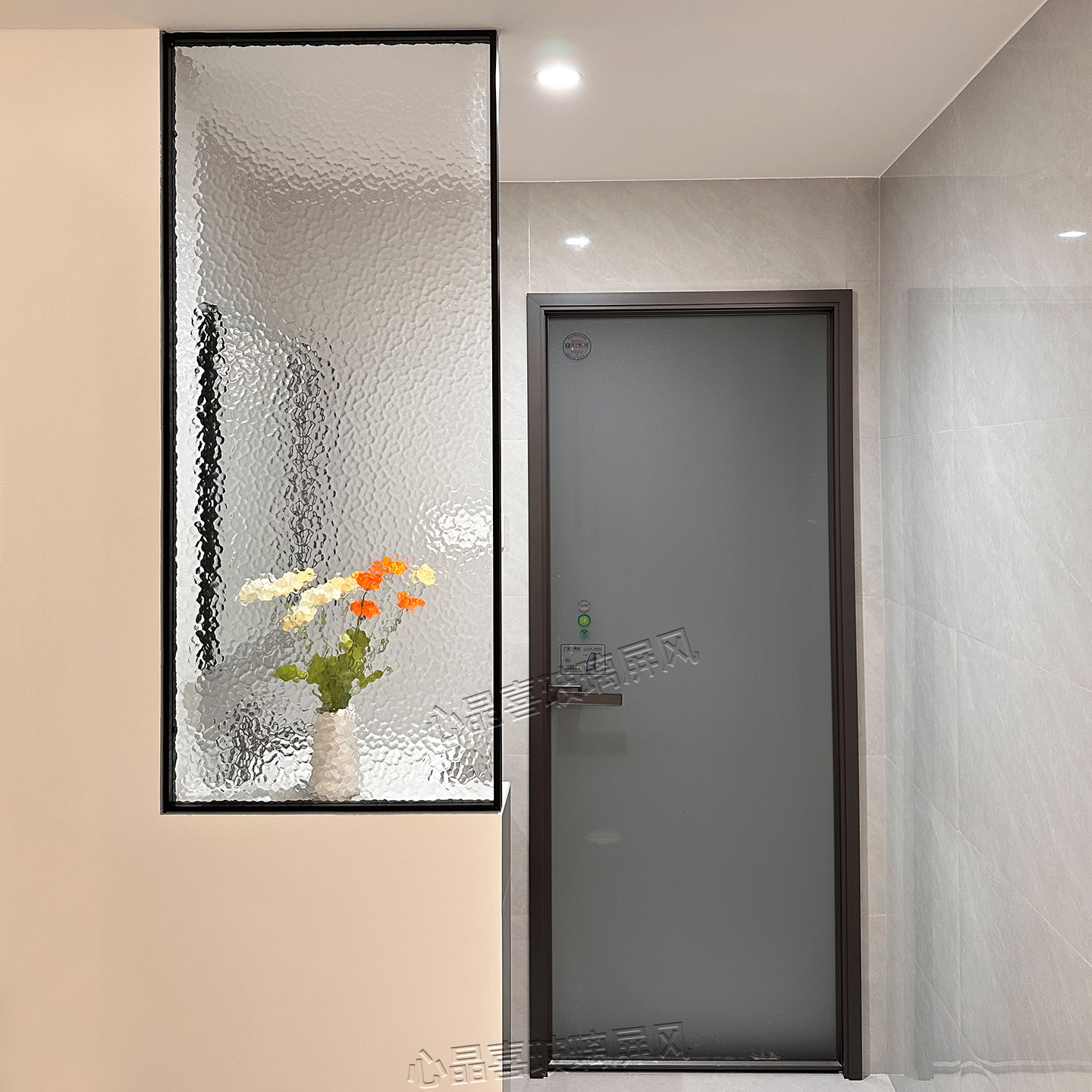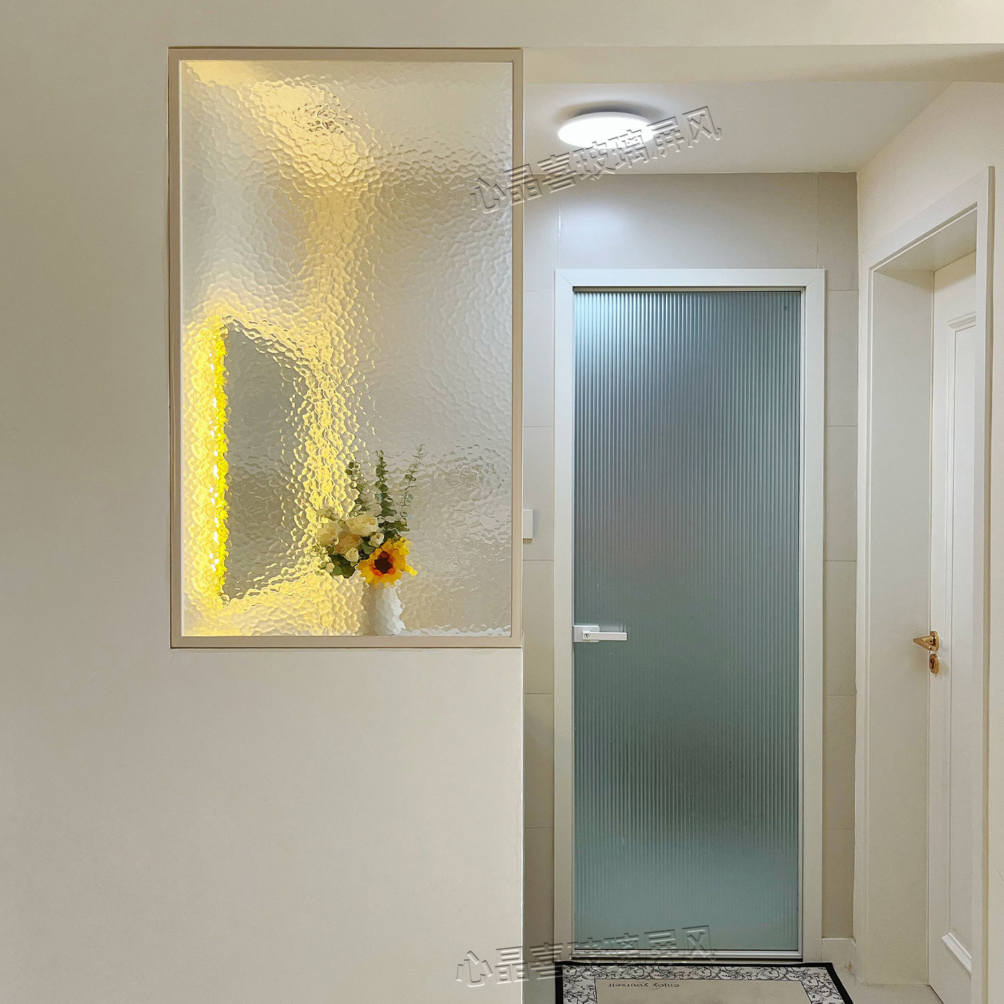卫生间半墙油画超白水波纹艺术玻璃隔断屏风厕所淋浴室洗手台干区