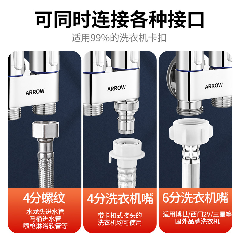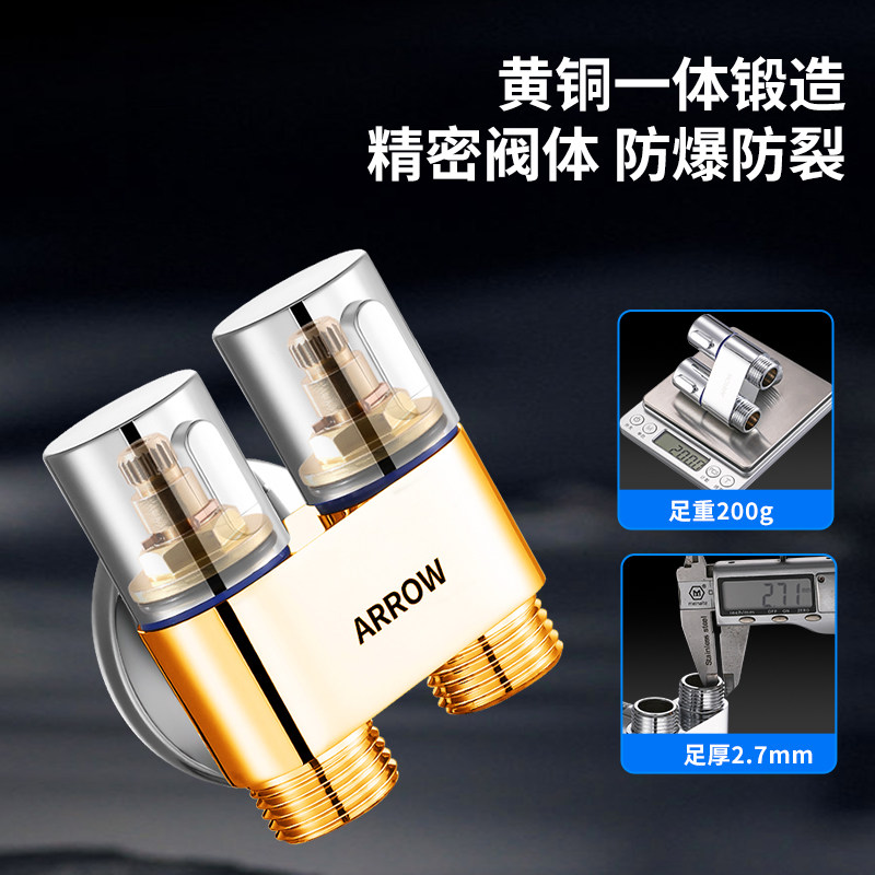 箭牌一进二出角阀全铜三通分水阀热水器家用马桶洗衣机开关水龙头