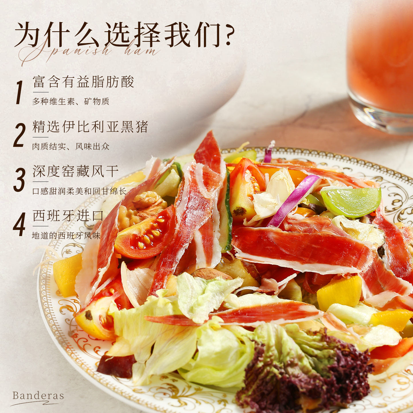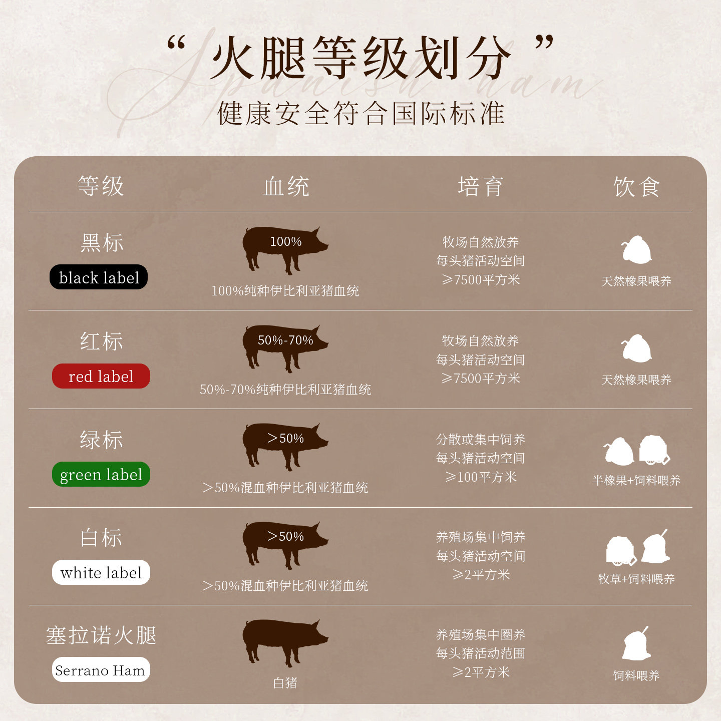 西班牙火腿片伊比利亚橡果塞拉诺生吃火腿即食50克白绿红黑标火腿