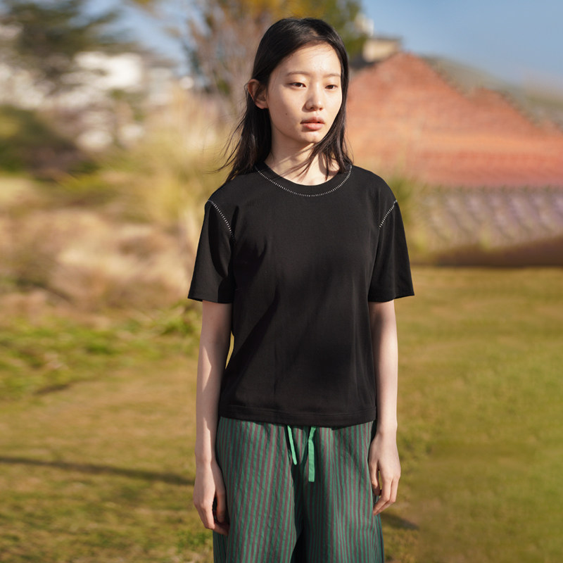 睡衣 弹力针织 ju好穿基础款 多色可选 朵朵可可 纯色百搭圆领T恤
