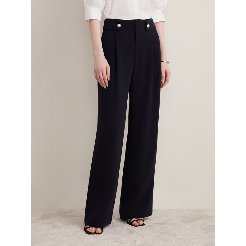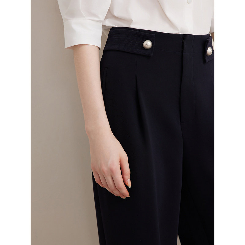 阔腿休闲裤 高腰腰袢垂坠长裤 春季 Goodland美地女装